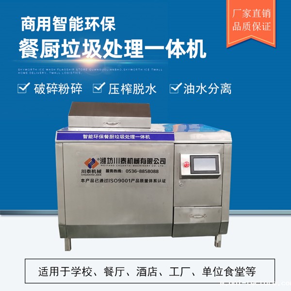 适用于酒店、学校、医院、商城、工厂、机关事业单位食堂餐饮等餐厨垃圾就地处理,该餐厨垃圾处理一体机,耗能低,处理量大,可达300KG/小时